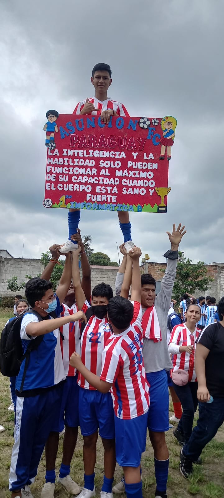 Bienvenido a 1ro informática B un grupo de estudiantes que se comenzaron a conocer y a vivir momentos bonitos y fueron creando recuerdos y ese 18'08'2022 fue las olimpiadas del colegió y nos pasamos super que bien ganamos al mejor eslogan